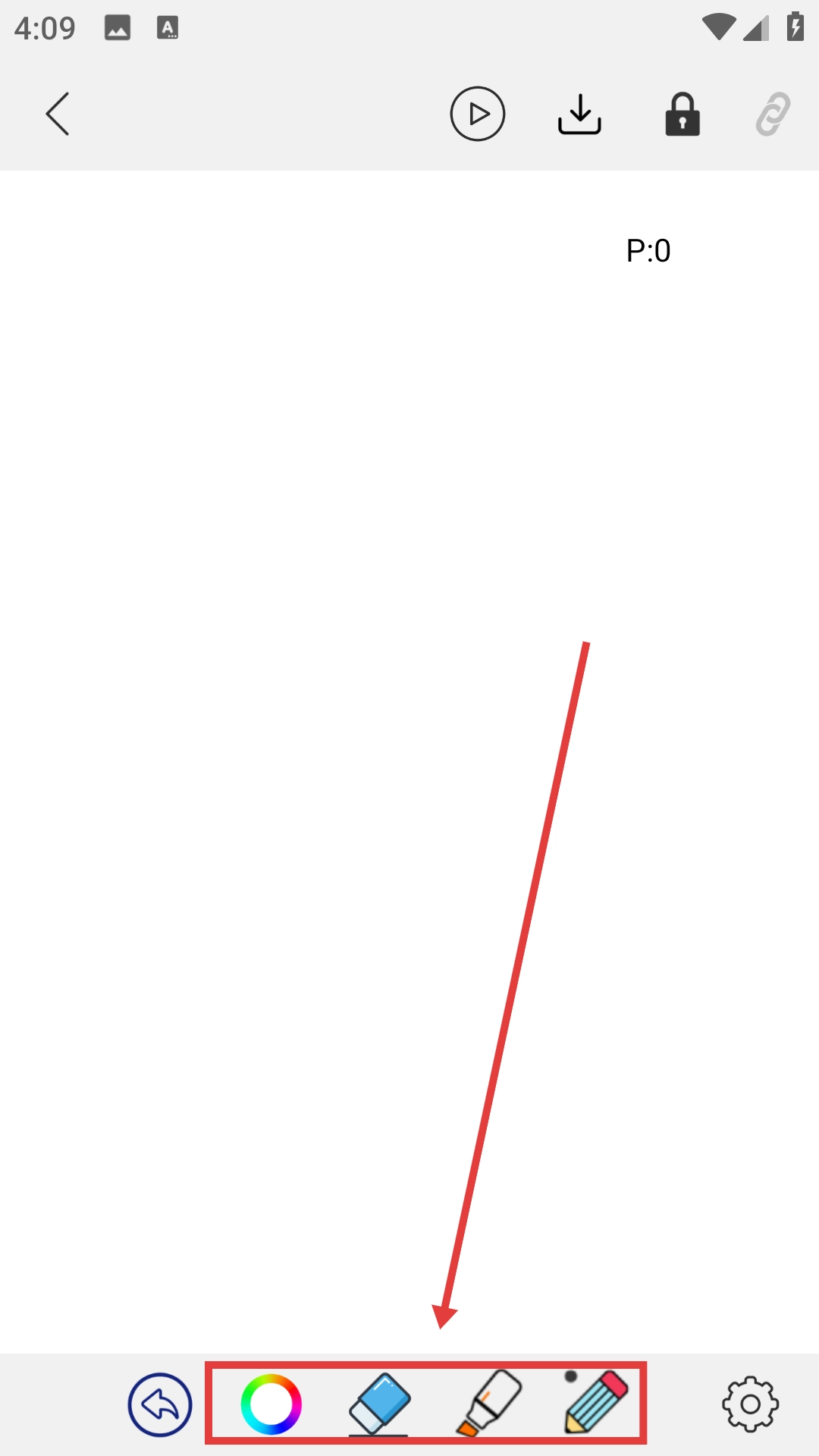 4、在绘画创作界面,可使用底部的颜色选择、橡皮擦、画笔等工具进行绘画创作。
