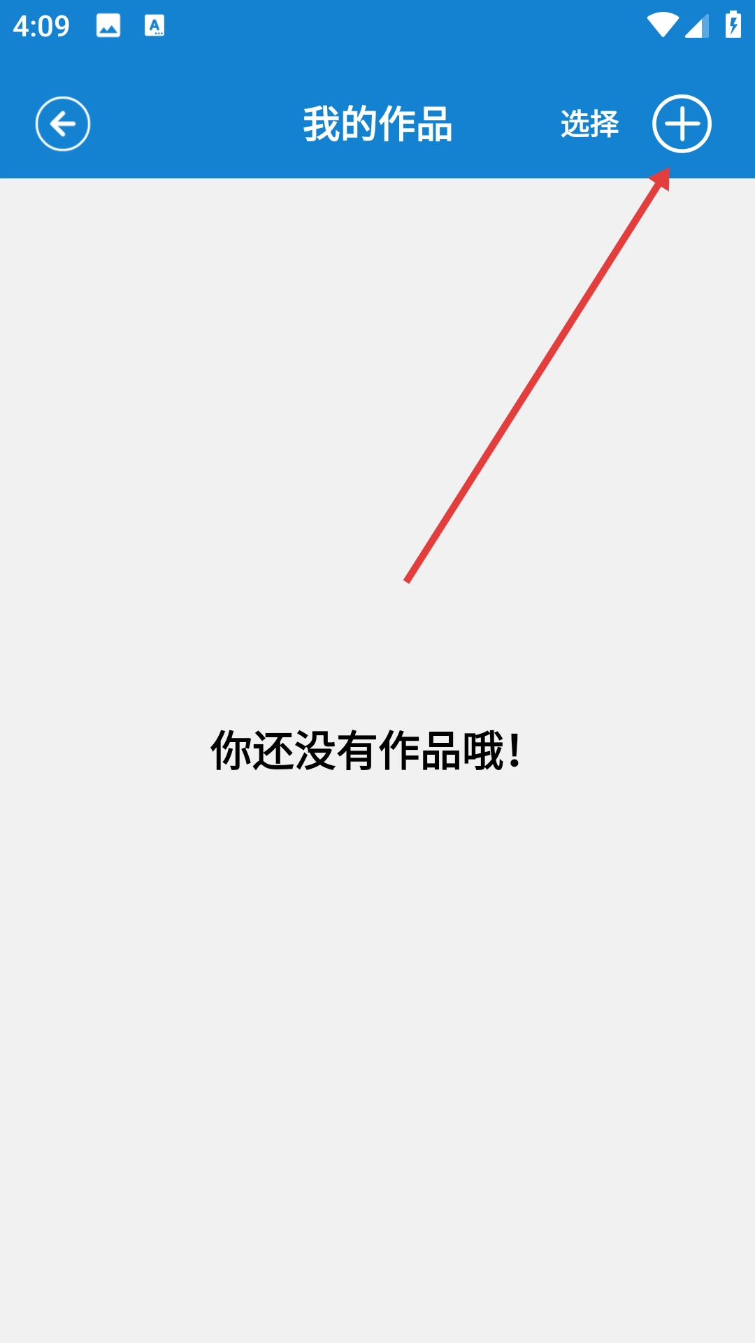 3、在“我的作品”页面点击右上角的【+】,进入绘画创作界面。