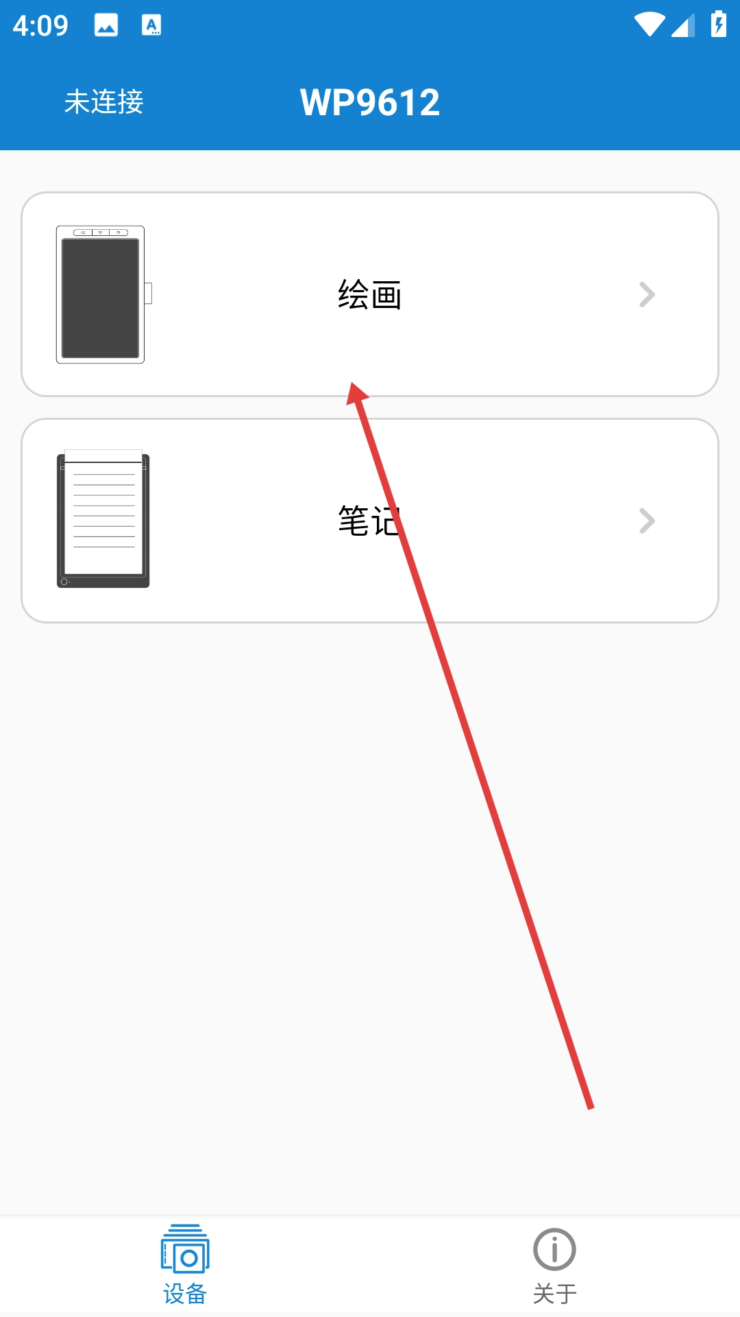 2、进入设备功能界面后,点击【绘画】,进入绘画作品管理页面。