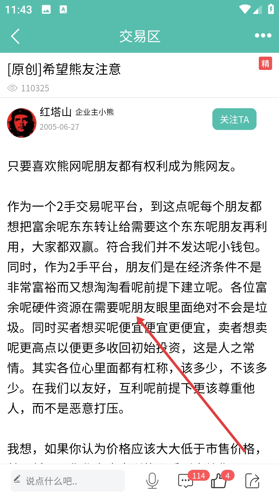 4、在帖子详情页可查看帖子内容,参与互动。