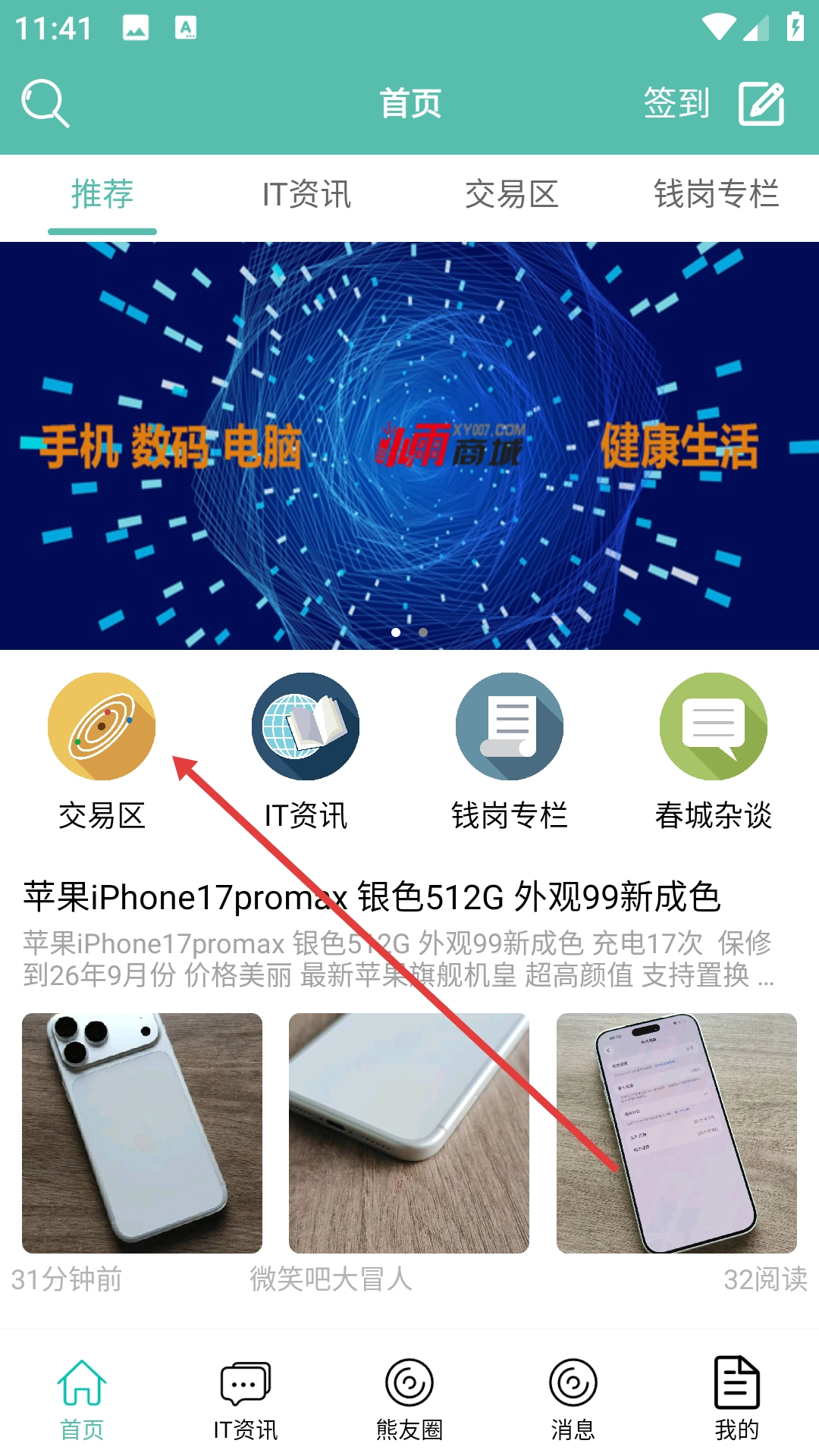 1、在首页点击【交易区】入口,进入交易区页面。