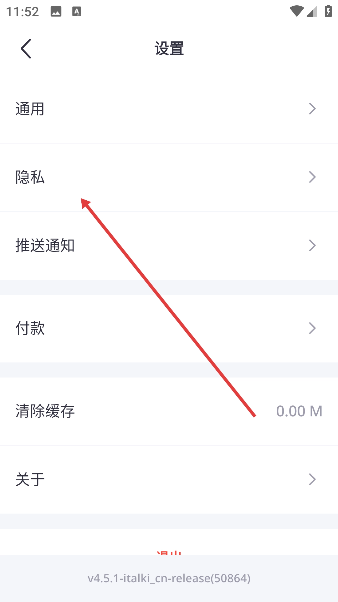 2、在设置界面点击【隐私】,进入隐私设置界面。