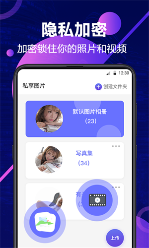 私密相册管家是一款实用的相册管理工具,能为相册提供多重保护。你可以创建文件夹导入照片,需要加密的照片可在此导入,十分方便;还能为相册文件夹命名,便于区分和快速查找分类相册。它支持私密相册加锁,能锁住重要照片,完美保障照片安全;界面简洁明了,操作便捷,同时支持保存照片、视频等多种文件,使用起来超级便捷好用。