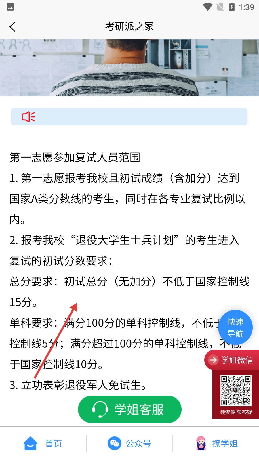 4、点击具体院校的分数线条目,进入详情页,查看复试分数线、复试人员范围等详细内容。