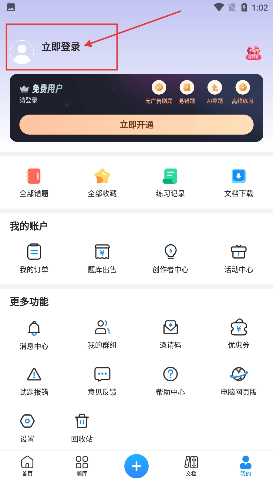 2、进入【我的】页面后,点击【立即登录】按钮,即可跳转至登录账号页面。