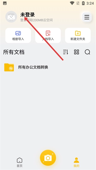 1、在布丁扫描首页,点击右下角【我的】按钮,进入个人中心页面。