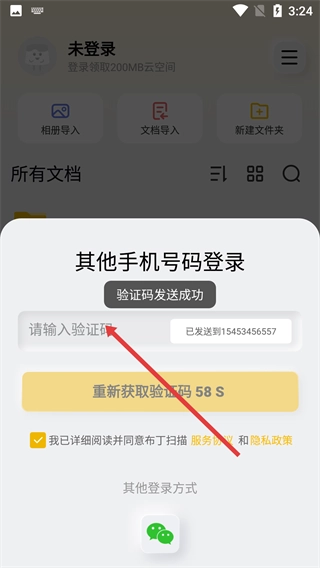 4、收到验证码后,在【请输入验证码】输入框中填入验证码,完成登录操作。