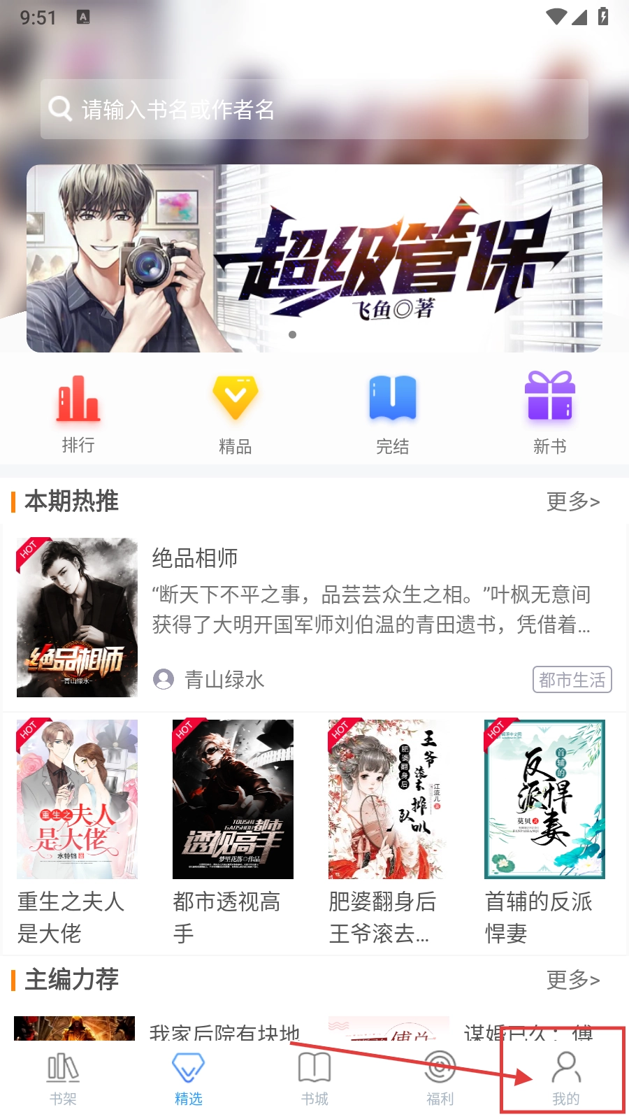 2、进入主界面后,你可以浏览系统推荐的书籍;要是需要进入个人中心,点击底部导航栏里的【我的】按钮就行。