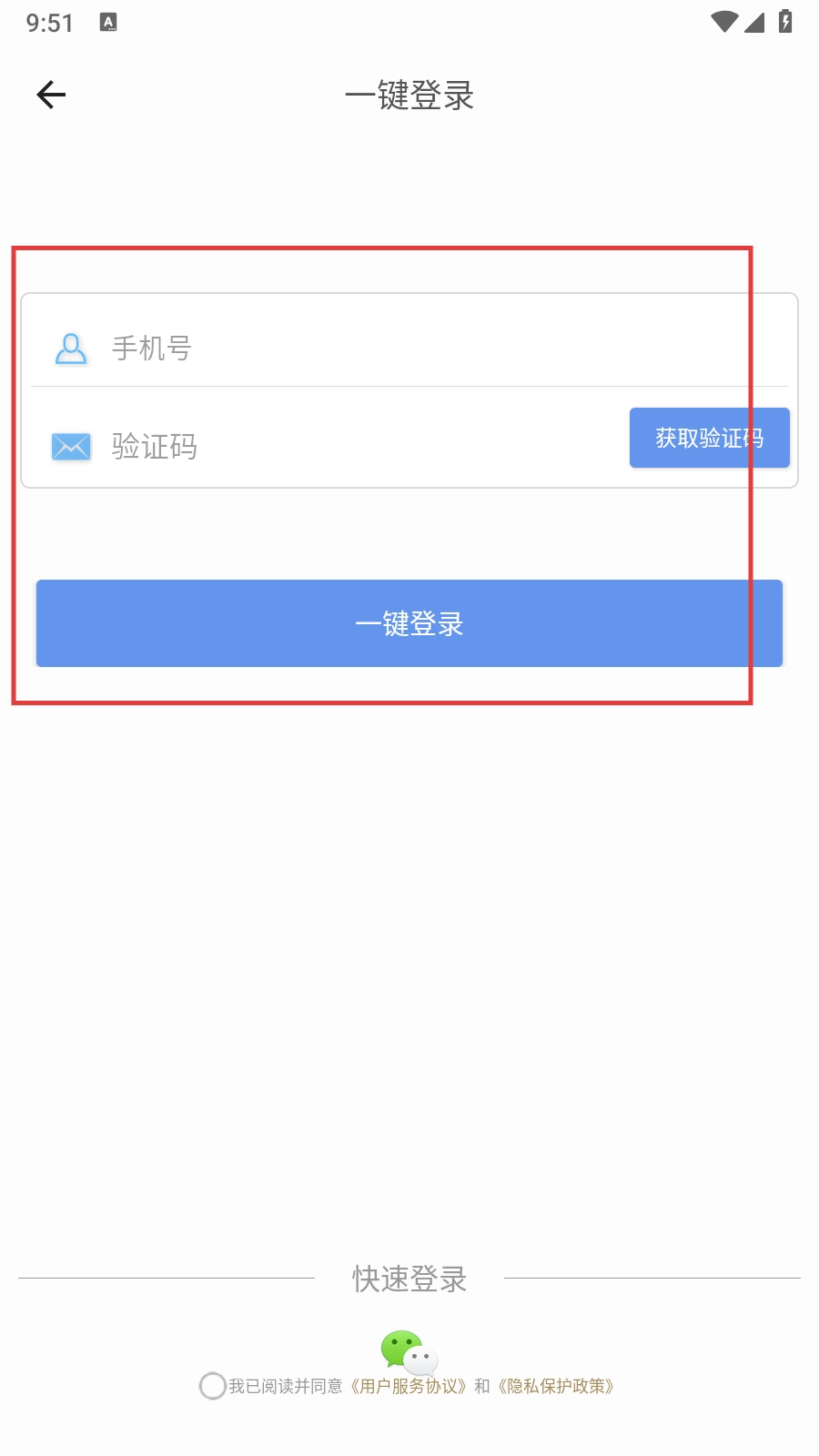 4、登录时可选择一键登录方式,具体操作是输入手机号,获取并填写验证码后点击【一键登录】;也可以选择微信快速登录来完成登录流程。
