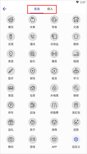 2、选择支出或者收入。