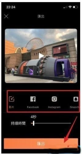 2、完成特效后可以直接选择汇出为影片或者直接分享到FB、IG等社交软件上即可。