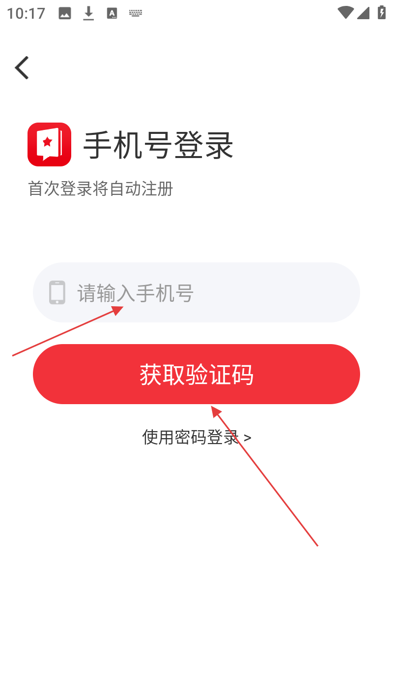 3在手机账号登录界面填写手机号码后,点击“获取验证码”按钮来获取相应的验证信息。
