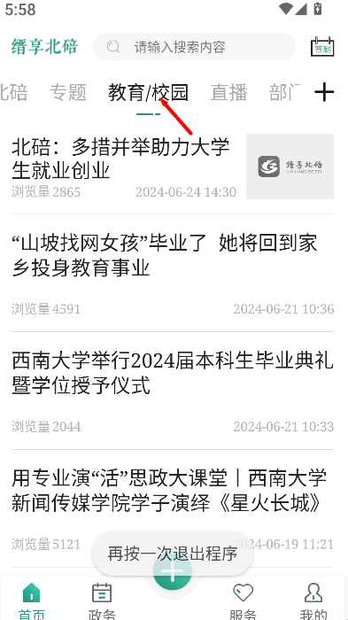 3回到网站主页后,在页面的栏目区域找到与校园教育相关的内容板块,点击该板块即可浏览学校发布的各类活动通知、教育领域的最新资讯以及丰富的学习资料。
