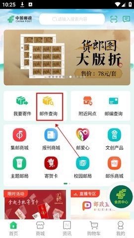 1.在本站安装中国邮政,打开点击邮件查询按钮。