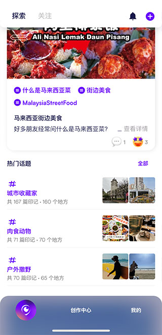 3、每一张地图都凝聚着创作者对城市与地点的独特理解,承载着他们探索城市的点滴故事。你也能在推荐页面,浏览其他创作者留下的印记,关注和你品味相投的创作者,与这些同频的伙伴展开紧密的互动。