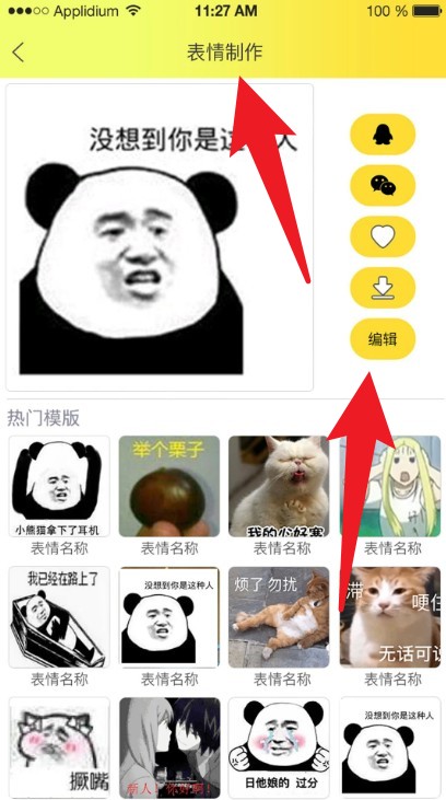 3、要是想自己制作表情,点击下方的「表情制作」进入编辑界面,自定义文字和样式后就能保存使用了。