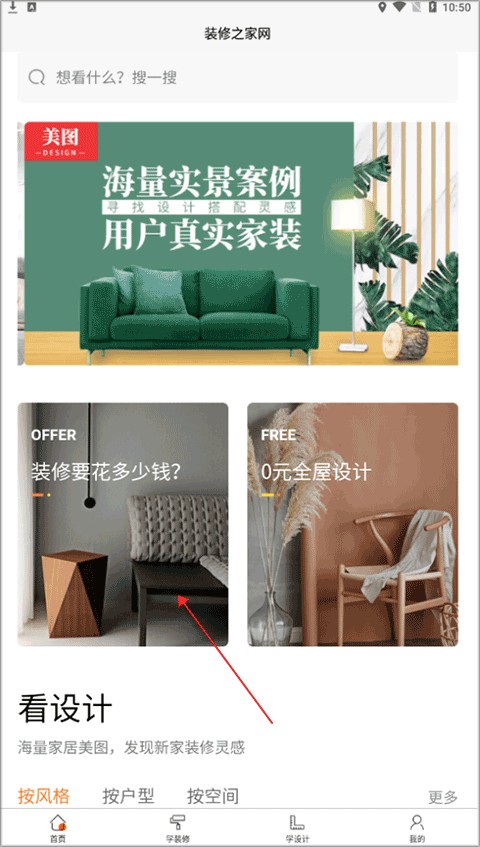 1先把装修之家APP安装完成,打开后进入主界面,找到预算报价的入口点击进去就能开始使用相关功能了。