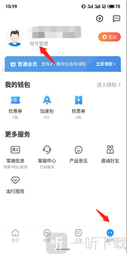 1. 启动订票助手软件,点击底部的“我的”选项,接着点击“常用信息”选项