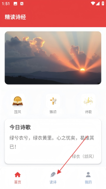 2、在主界面点击底部【读诗】选项,进入读诗页面。