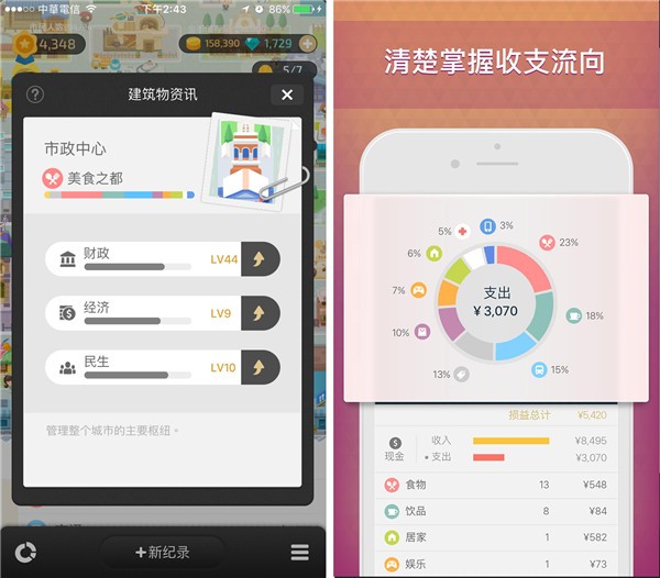 3、把单调乏味的日常记账转化为能带来满满成就感的城市经营类游戏。