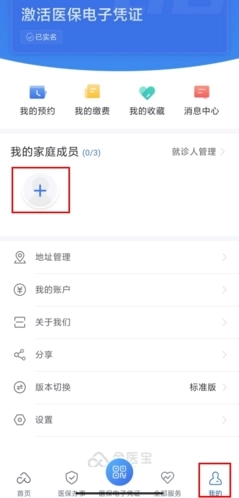 1、在我的页面中,在我的家庭成员一栏中,点击+按钮;