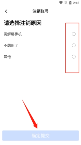 3、选择注销原因后,点击下方的“确认提交”;