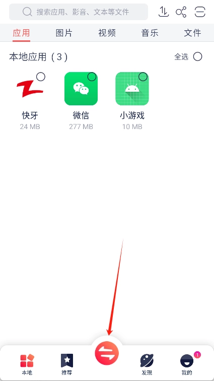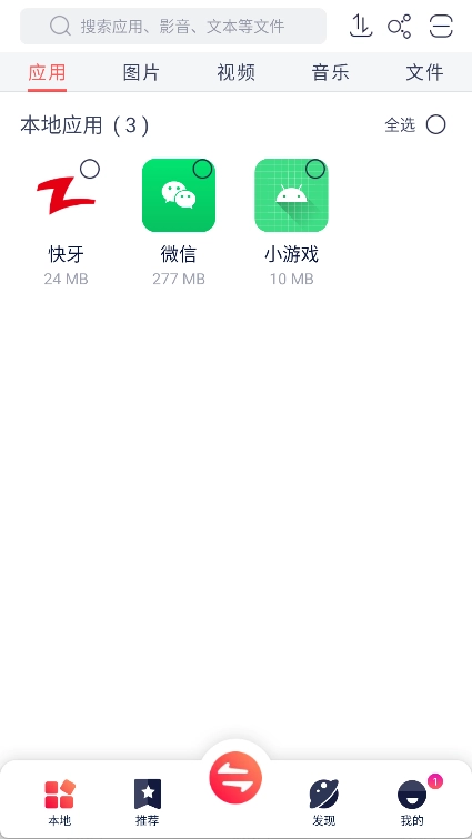 2、启动快牙应用:打开后,您会在主界面看到本地存储的所有应用程序。