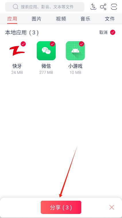 5、文件传输:连接成功后,您可挑选需传输的文件(像应用、音乐、视频之类),接着点击“传输”按钮完成发送操作。