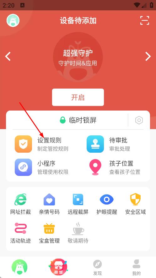 2在设备准备添加的界面中,找到并点击“设置规则”选项,即可跳转至与安装孩子端应用相关的操作页面。
