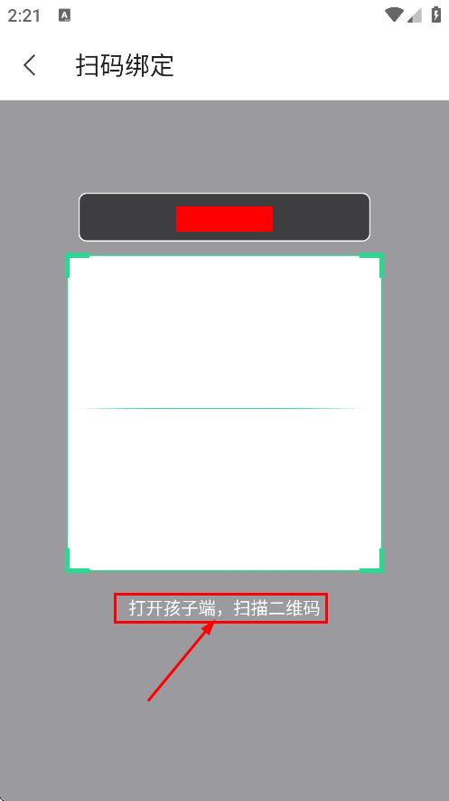 4进入设备绑定的扫码界面后,让孩子端的设备扫描屏幕上显示的二维码,即可完成两者的关联设置。