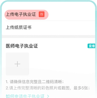 按照对应指引规范,上传执业证书