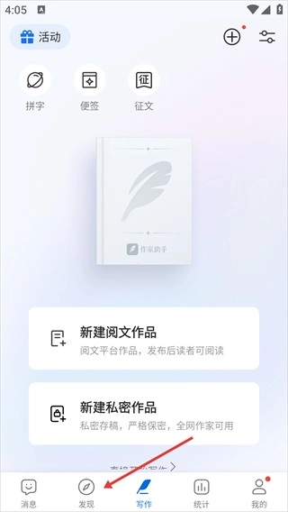 1、点击底部【发现】选项,进入发现广场页面。