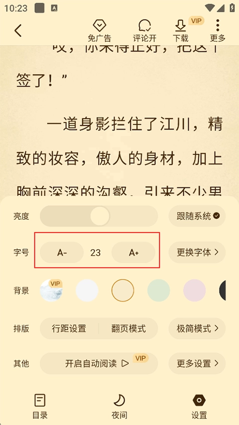 流畅舒适的界面满足你背景颜色主题的切换字体 字号的随意变换夜间模式等功能给你无与伦比的阅读享受,畅享品质阅读。