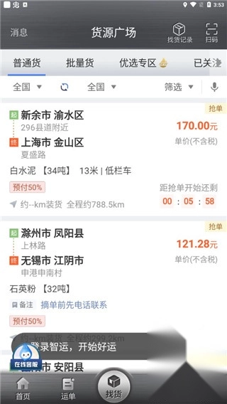3. 在“找货”功能里能够查看更多订单,依据自身需求来挑选合适的货运任务。