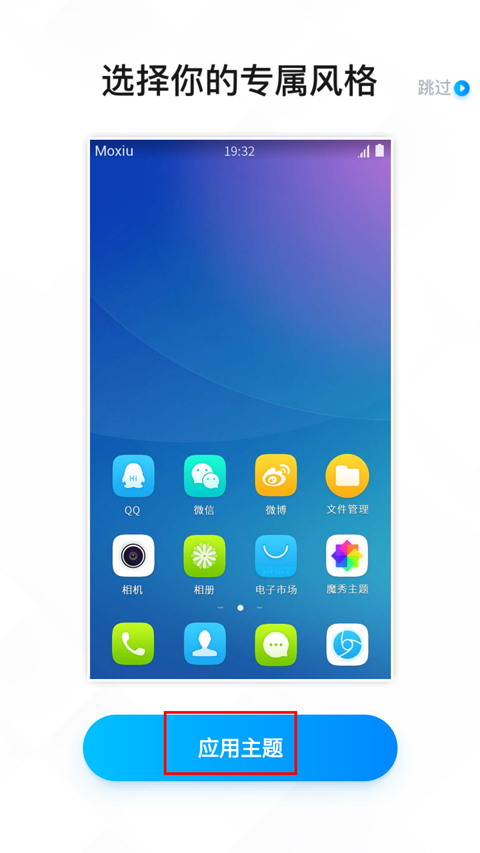 1、在本站完成软件安装后,滑动选择好主题,再点击中间的“应用主题”按钮即可。