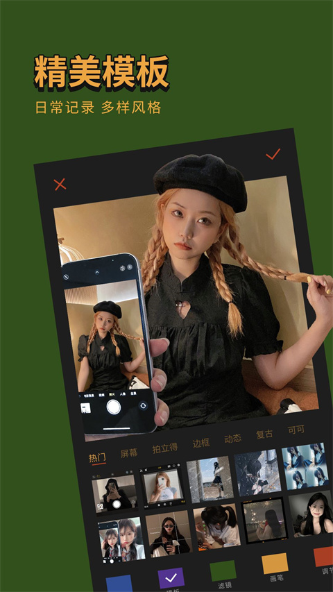 可可修图为喜欢修图美颜的用户提供了一个全新的编辑工具,这款软件以独特的复古风格为特色,想要制造出老照片画面效果的用户可以使用这款软件,获取各种滤镜和贴纸打造出精彩的照片画面。