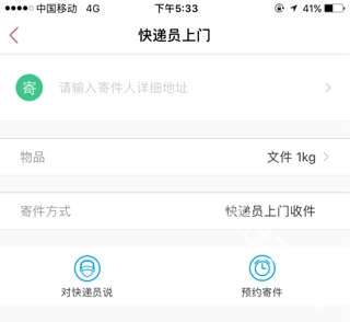 3、点击输入寄件人地址,此外还能进行寄件预约,并给快递员留言。
