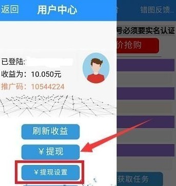 点击【用户中心】即可查看收益情况,账户余额满2元时可申请支付宝提现。