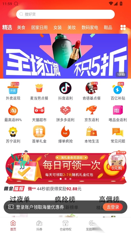 还可以在这里享受抖音返利福利,在这里购买各种抖音商品可以获取返利。