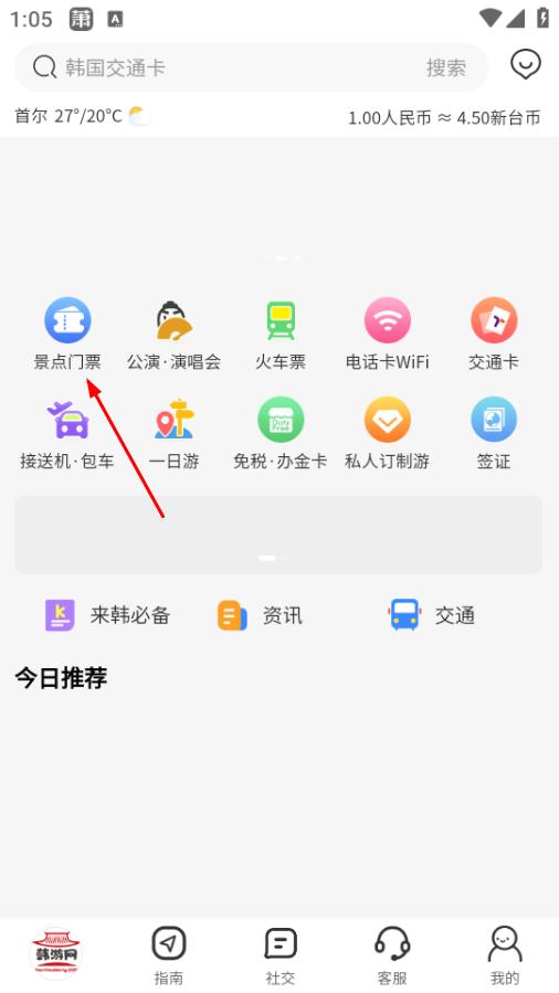 1在韩游网的主页面找到并点击“景点门票”选项,即可跳转至景点门票的分类展示页面。