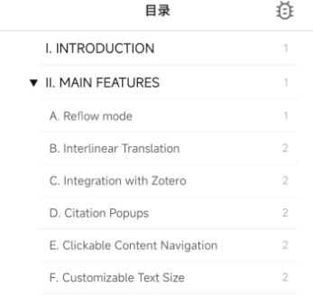 6. 自动目录跳转阅读功能:应用程序可自动生成论文的章节目录,助力您快速把握论文的整体框架与上下文关联,从而更高效地开展论文阅读与内容理解工作。