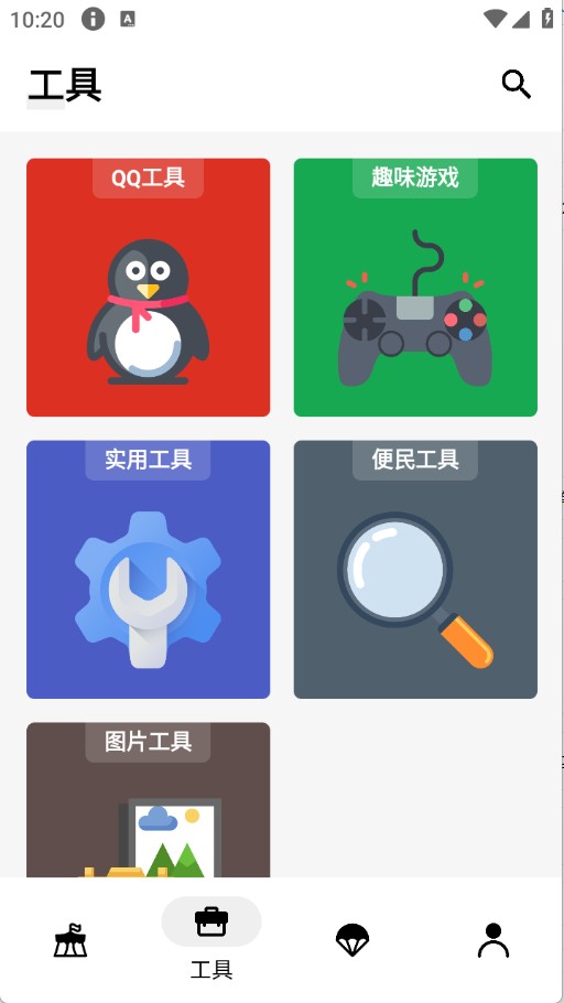 3、“工具”页面里,各类工具都做了细致的分类,实用工具、趣味工具、图片工具等应有尽有。