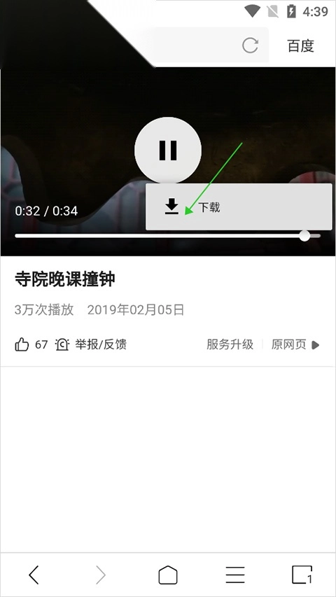 用户在视频播放页面点击播放画面后,播放画面底部右侧会弹出扩展功能按钮(即下图中绿色箭头所指向的按钮)