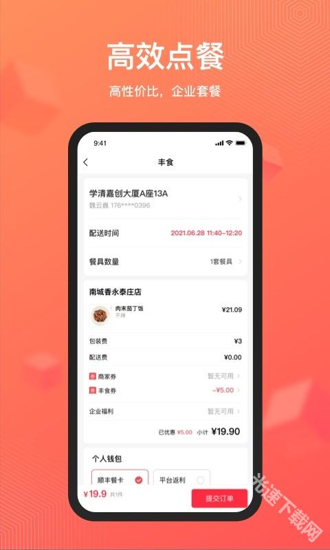 丰食是一款非常实用的手机订餐软件。不管是个人订餐还是团队订餐,都可以在手机上随时随地完成,软件拥有高品质的供餐商家和专业的配送骑手,为每个用户提供安全快速的配送餐食,非常值得使用。