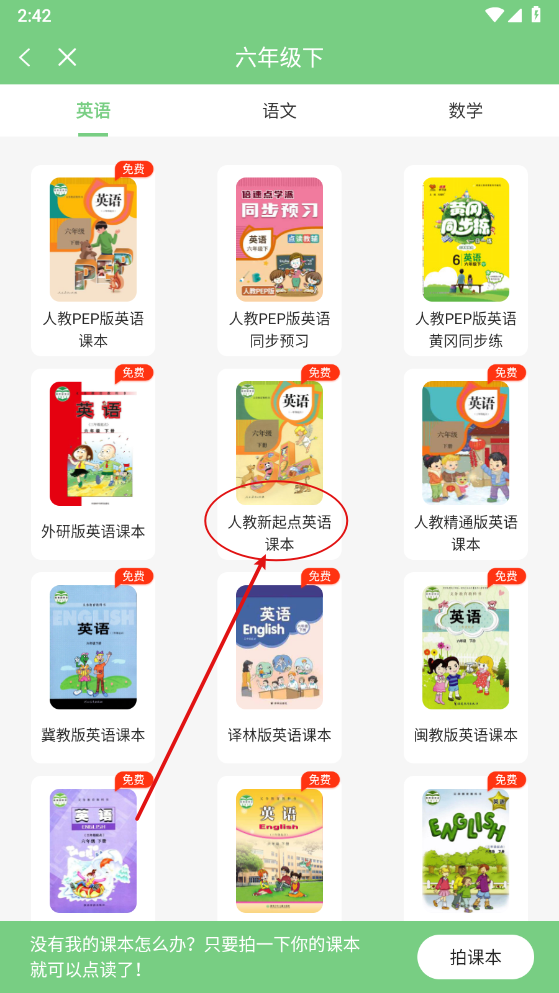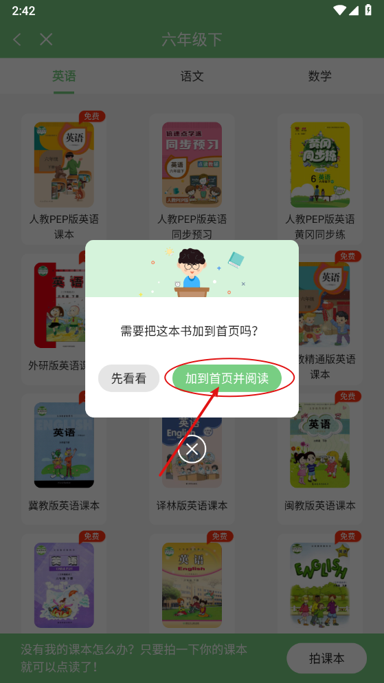 说明:【拍课本】功能目前仅支持大部分的英语课本和语文课本。