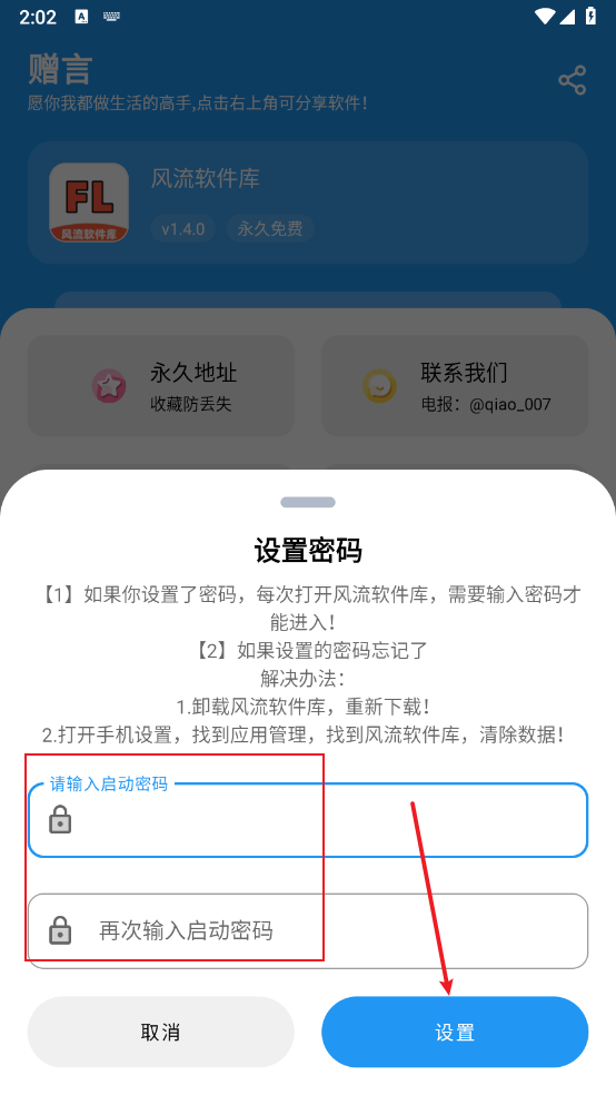1、如果你设置了密码,每次打开风流软件库时,都得输入密码方可进入。