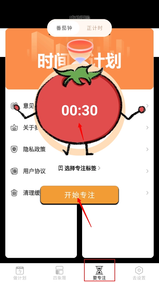 5、在“专注”板块,可开展计时专注操作,点击“开始专注”按钮即可启动。