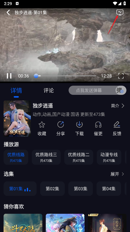 1、在动漫播放详情页,点击""按钮。