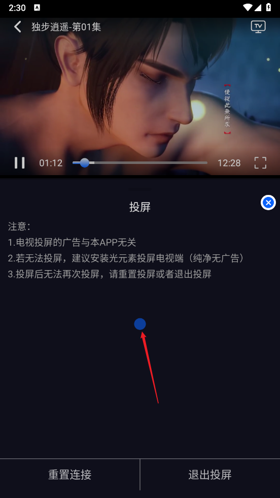 4、最后搜索并连接电视,完成连接后就可以开启投屏播放了,需要注意的是,手机和电视必须处于同一网络环境下才能进行投屏操作。