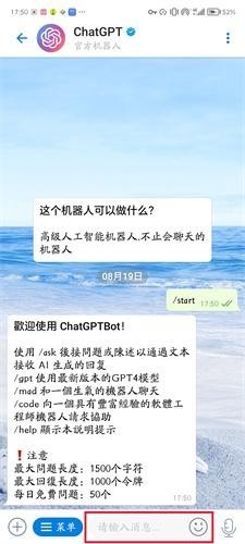 4、进入聊天版块后,点击下方的开始按钮,接着在文本框里输入问题即可。